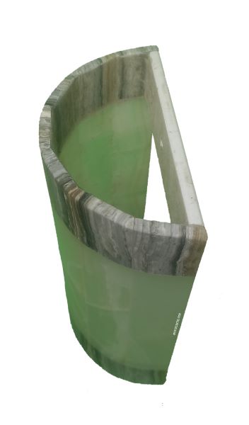 DESCRIPCIÓN: Pantalla para foco de interiores y exteriores, tallada en ónix. Al tratarse de artículos elaborados en piedra natural, puede haber una ligera variación en el color y vetas.