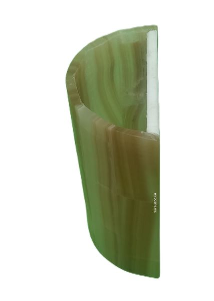 DESCRIPCIÓN: Pantalla para foco de interiores y exteriores, tallada en ónix. Al tratarse de artículos elaborados en piedra natural, puede haber una ligera variación en el color y vetas.